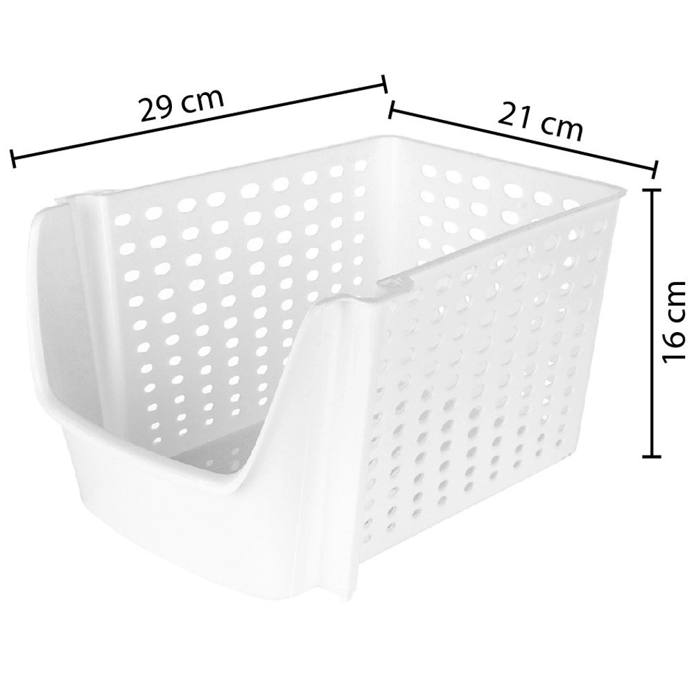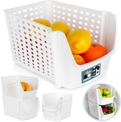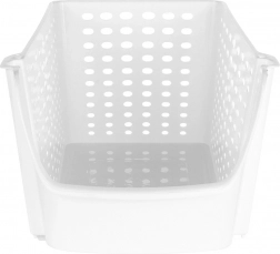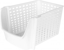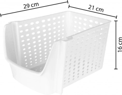 Den alsidige hvide kurv er ideel til overskuelig opbevaring af frugt, grøntsager og andre madvarer. Perforering på siderne og bagtil sikrer ventilation og bedre synlighed af indholdet, hvilket hjælper med at holde råvarerne friske længere. Den forreste udskæring giver hurtig og nem adgang til det opbevarede indhold.