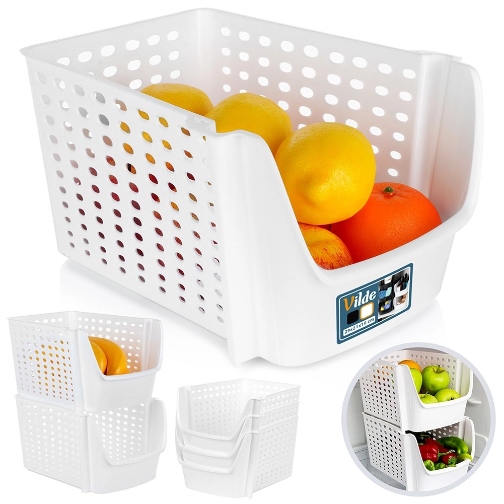 Køber du flere kurve, kan de stables sikkert og dermed spare plads i køleskab, spisekammer eller skab.