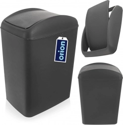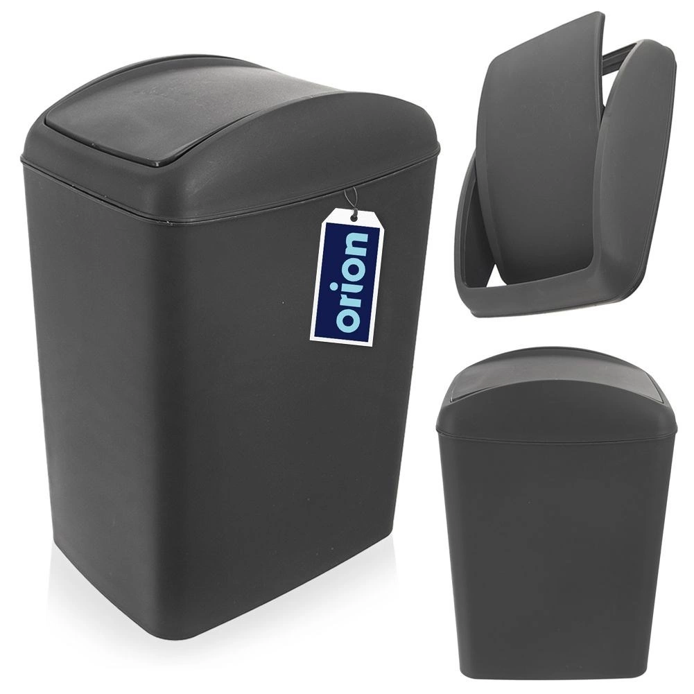 Kompakt affaldsspand på 5 l med vipelåg for bekvem og hygiejnisk bortskaffelse af affald. Takket være de små mål passer den til badeværelse, køkken og kontor. Fremstillet af holdbar plast i elegant mørkegrå farve, nem at rengøre og vedligeholde. Pladsbesparende mål, vipelåg mod lugt og let, stabil konstruktion til daglig brug.