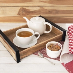 Den rektangulære bakke af mangotræ i industriel LOFT-stil kombinerer naturligt udseende og funktionalitet. Den er ideel til servering af kaffe, te, desserter og morgenmad på sengen, såvel som til stilfulde præsentationer under fester og cateringarrangementer. Takket være de forhøjede kanter og de solide metalhåndtag bæres den komfortabelt og sikkert.