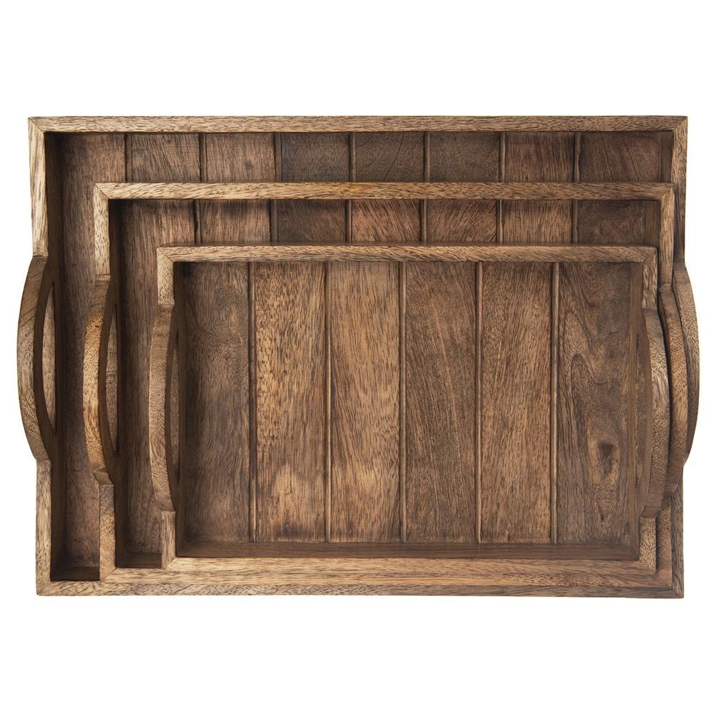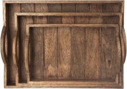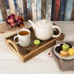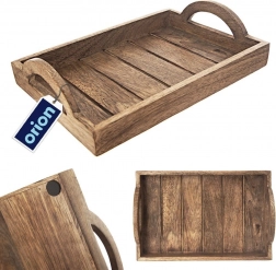 Elegant rektangulær bakke i kvalitets-mangotræ, ideel til servering af kaffe, te, desserter eller morgenmad på sengen. Den naturlige åretegning og let patinerede finish i industriel stil giver din borddækning et moderne udtryk. Fugtbestandighed, hurtig tørring og at træet ikke absorberer lugte, gør den til et fremragende valg til både hjemmet og gastronomiske miljøer.
