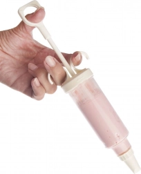 Stempeldosering og den gennemsigtige cylinder giver kontrol over mængden af creme og sikre, lige strøg under dekorationen.
