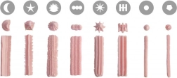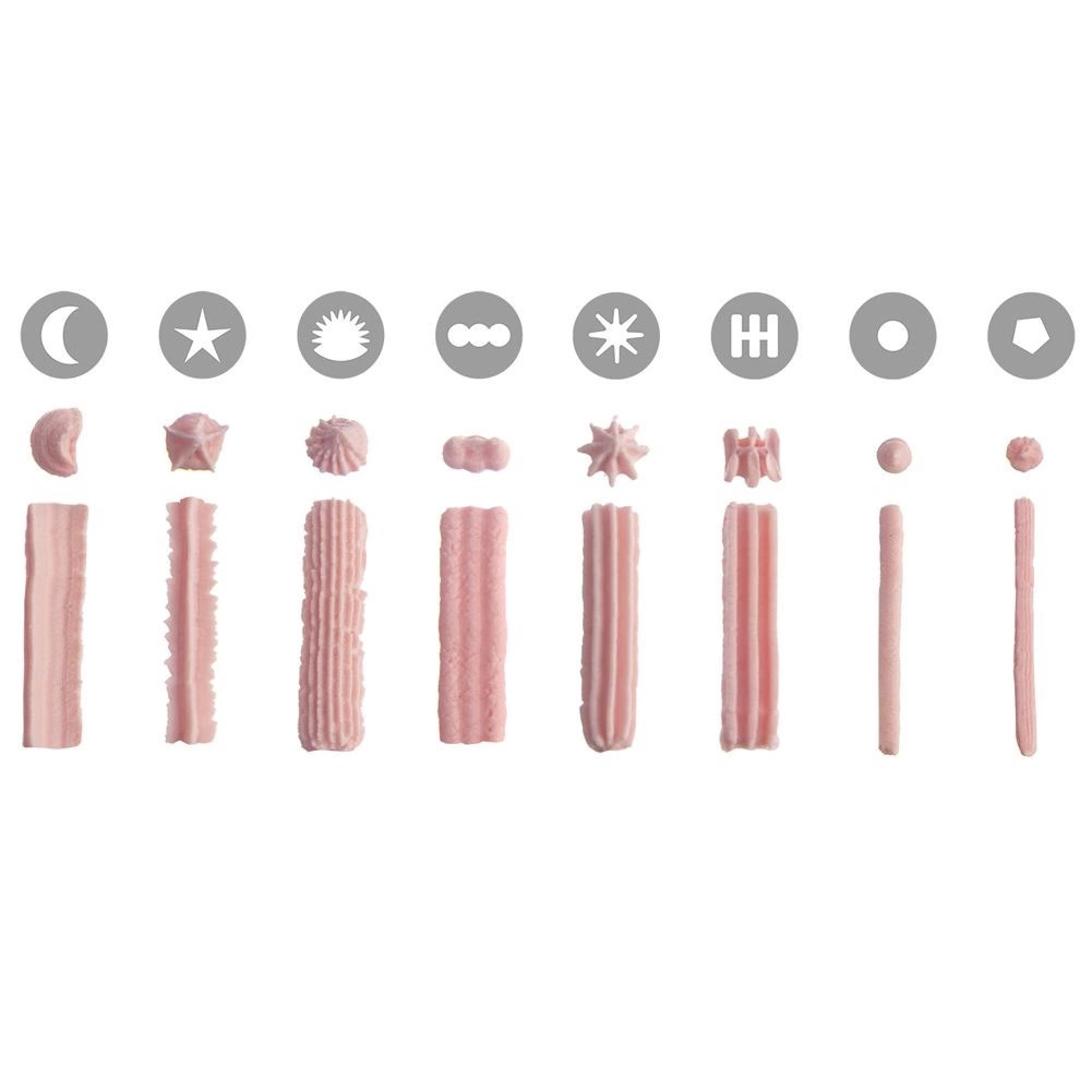 Sættet indeholder forskellige tilletyper – runde, stjerne, flade og kronblade – til professionelle dekorationer derhjemme.