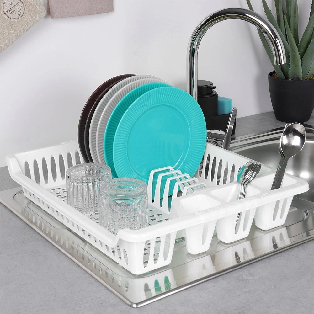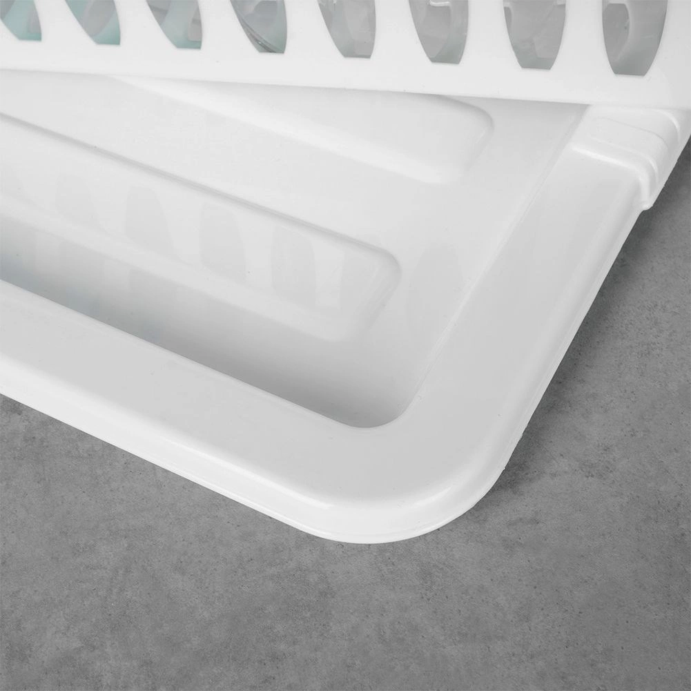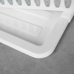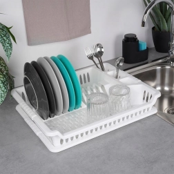 Hold orden efter håndopvask med dette rummelige opvaskestativ, der rummer op til 12 tallerkener, glas og bestik. Integrerede rum og en aftagelig drypbakke sikrer effektiv afledning af vand og en tør arbejdsflade. Det minimalistiske design i hvid passer til både moderne og klassiske køkkener.