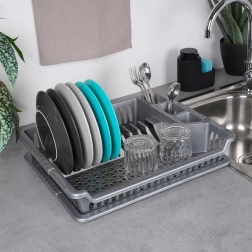 Takket være det universelle, tidløse grå design passer det perfekt ind i ethvert køkken. Opvaskestativet er let at rengøre og egner sig til daglig brug – en ideel hjælper til håndvaskede tallerkener, skåle, glas og bestik.