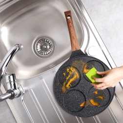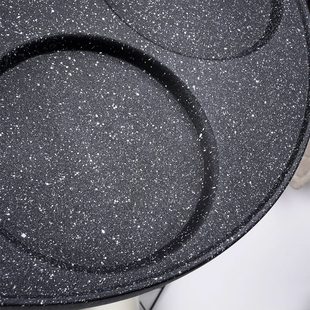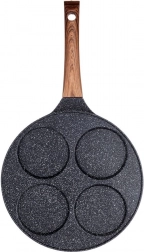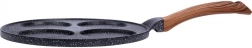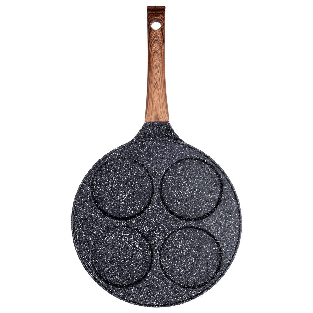 Stilren pande fra BLACK&WOOD-serien i den populære kombination af sort stenlook og træ gør det nemt at tilberede æg, æbleskiver og mini-pancakes. Fire dedikerede huller hjælper med at holde den ideelle form og størrelse, mens aluminiumskroppen med jævn varmefordeling forkorter tilberedningstiden og sparer energi.