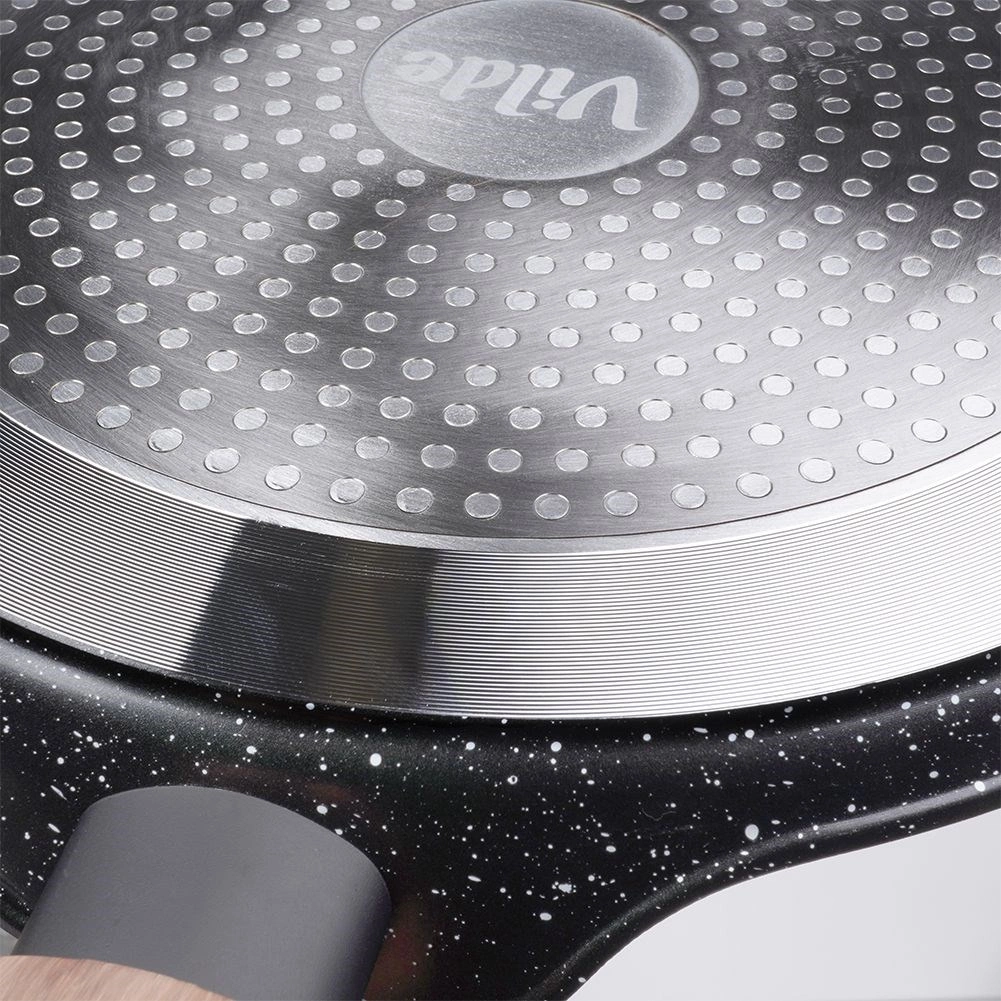 Den flerlagede bund sikrer hurtig og jævn opvarmning og er kompatibel med gas, el, keramik, halogen og induktion.