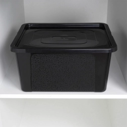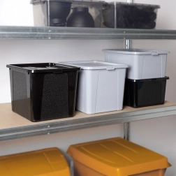 Det robuste låg beskytter indholdet mod støv og fugt og gør det muligt at opbevare pænt og dækket på hylder og i skabe.