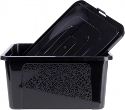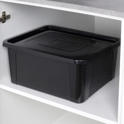 Den alsidige plastboks med låg hjælper dig med nemt at organisere klædeskabe, hylder og reoler. Dækslet med kliklukning beskytter indholdet mod støv og fugt, boksen har afrundede hjørner for sikker brug og stærke vægge til daglig belastning.