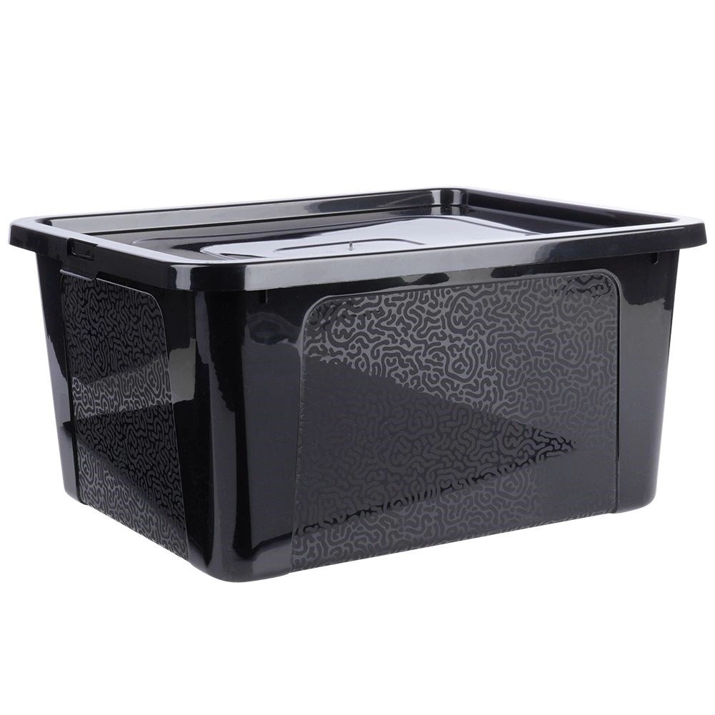 Med en volumen på 20 l egner den sig til tekstiler, legetøj, dokumenter, køkkenudstyr og værktøj. Den er stabelbar, så du sparer plads i bryggers, garage og på kontor. Det diskrete dekor på sidevæggene giver et elegant udseende, der passer ind i moderne interiør.