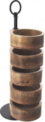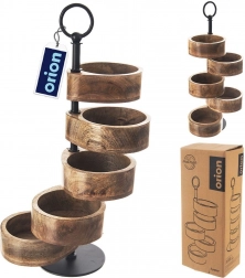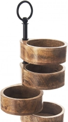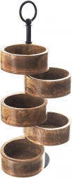 Denne fleretagers etage i mangotræ med en højde på 44,5 cm giver en elegant måde at servere nødder, chips, tørret frugt, slik, småkager eller tapas på. Fem individuelt roterende skåle muliggør en attraktiv anretning og nem adgang for gæsterne. Det naturlige mangotræ er modstandsdygtigt over for fugt og deformation, absorberer ikke lugte og tørrer hurtigt.