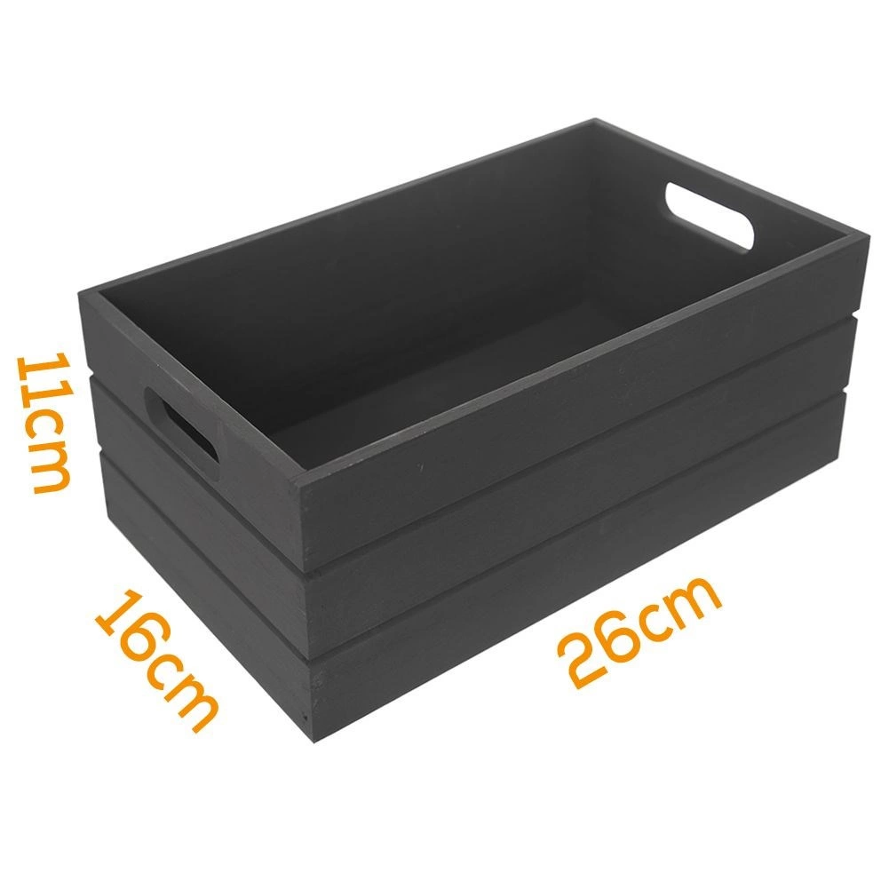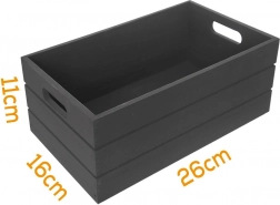 En praktisk trækasse i elegant sort hjælper med at holde orden i ethvert rum. Den er lavet af holdbart træ, har integrerede greb for nem transport og de kompakte mål 26 × 16 × 11 cm. Perfekt til kosmetik, kontorartikler, krydderier, køkkenredskaber og småt tøj. Alsidig, robust og dekorativ – passer perfekt i både klassiske og moderne interiører.
