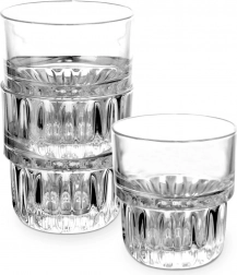 Praktisk glas med en kapacitet på 200 ml af kvalitets-, kraftigt glas med riflet, tilspidset bund for et stabilt greb. Perfekt til vand, lemonade, juice, drinks og iste. Det er gennemsigtigt for æstetisk servering, egnet til opvaskemaskine og mikrobølgeovn og er stabelbart for pladsbesparelse takket være formen.