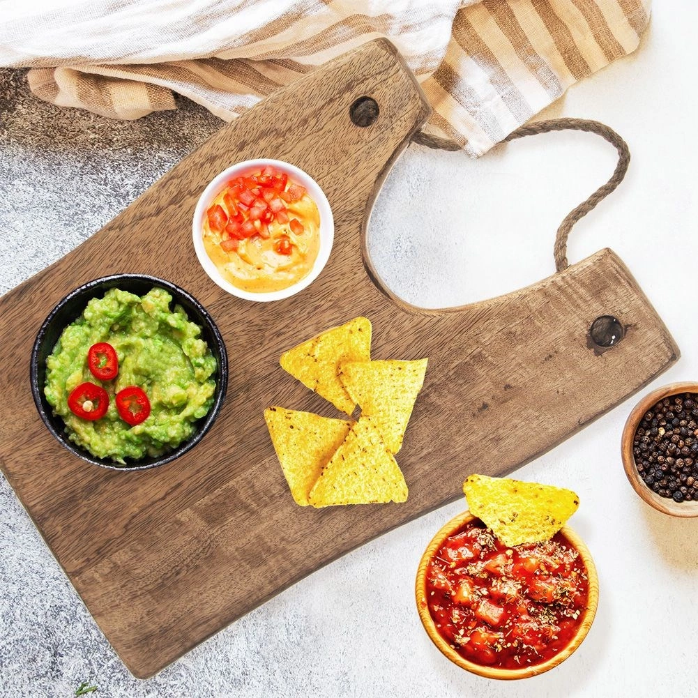 Brug brættet som et elegant fad til snacks, oste og dips, eller som en stabil skæroverflade.