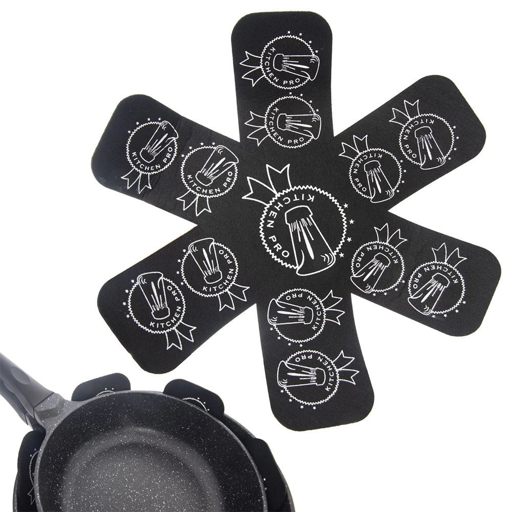 Induktionsbunden sikrer kompatibilitet med alle typer komfurer. Medfølger gør en blød underlagsskive, der beskytter panden mod ridser.