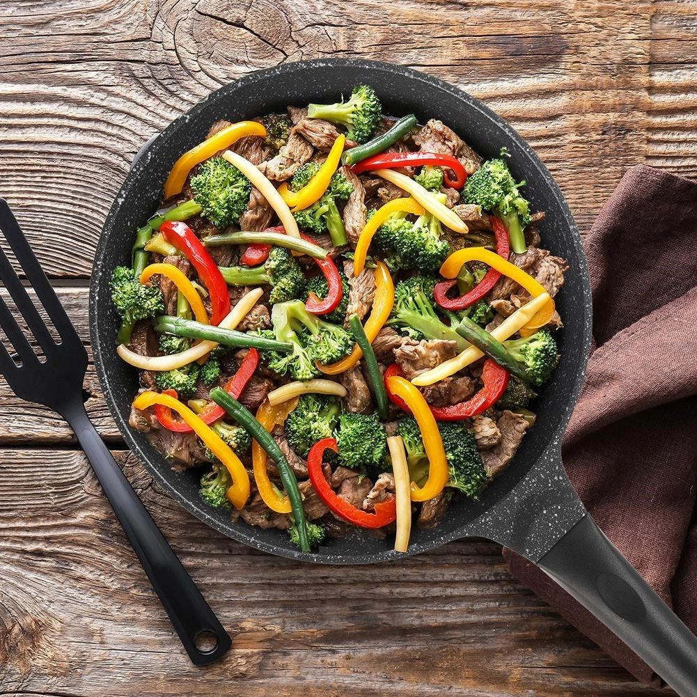 Pfluon Granit-overfladen muliggør madlavning med minimalt fedt, nem frigivelse af maden og let rengøring uden at maden brænder på.