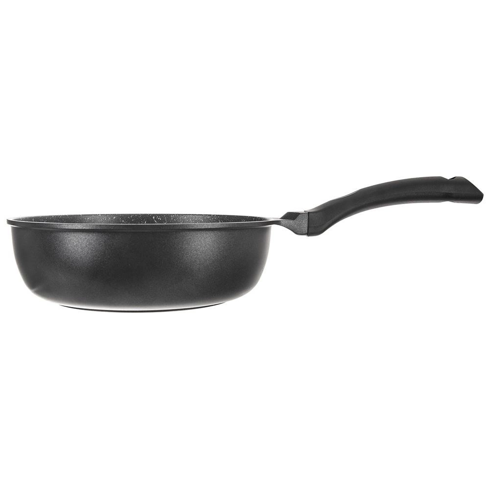 Den non-stick Pfluon Granit-overflade uden PFOA gør det muligt at lave mad med mindre olie; maden brænder ikke på, og rengøringen er nem – inklusive mulighed for opvaskemaskine. Det ergonomiske håndtag i robust materiale giver et sikkert greb og sikker håndtering.