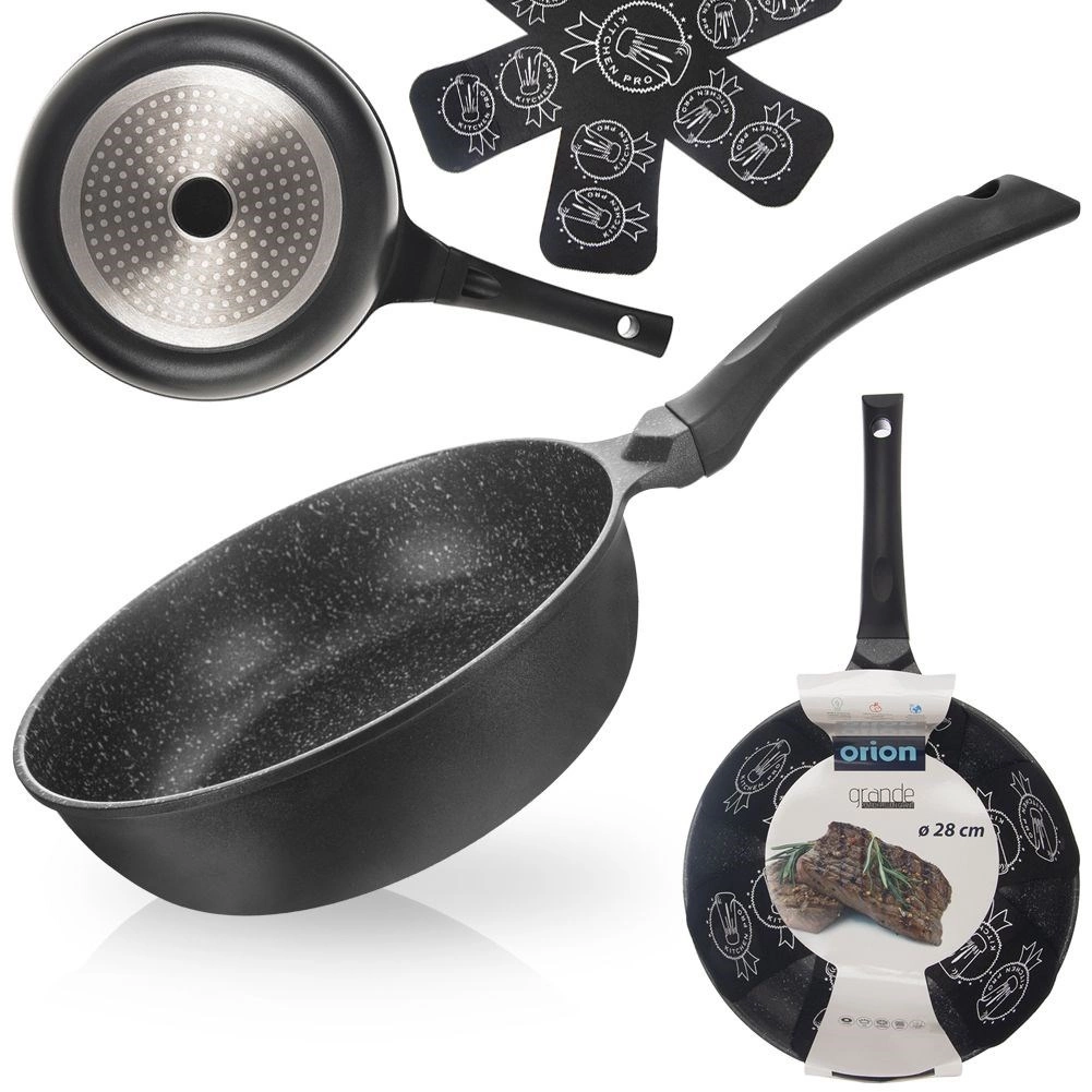 Opdag et praktisk og elegant valg til daglig madlavning: den dybe og højkantede pande GRANDE 28 cm. Den støbte aluminiums-krop med fremragende varmeledning minimerer varmetab og fremskynder tilberedningen. Takket være de forhøjede kanter er den ideel til stegning, sautering og simring af kød, grøntsager og one-pan-retter.