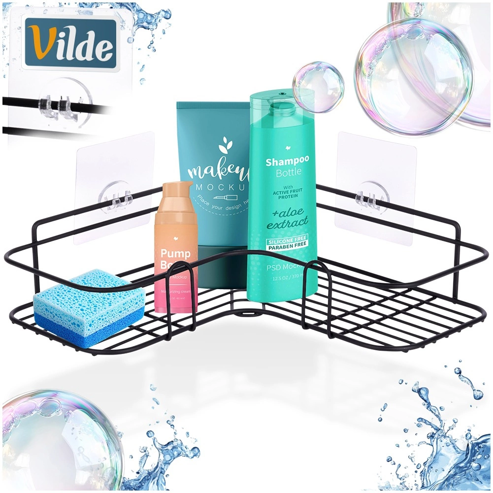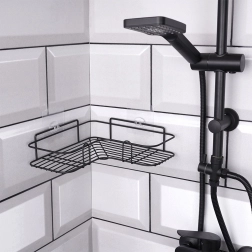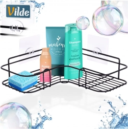 Den selvklæbende hjørnehylde til brusebadet er en fremragende løsning til ethvert badeværelse i moderne loft-stil. Takket være den robuste metalkonstruktion med mat sort pulverlak er den stærk, holdbar og nem at rengøre. Velegnet til opbevaring af shampoo, gel, børster og svampe, og kan også bruges i køkkenet som en krydderihylde. Inkluderer gennemsigtige selvklæbende puder til hurtig installation uden at beskadige fliserne.