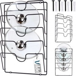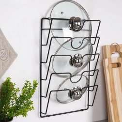 Fire til fem niveauer til sikker opbevaring af låg i forskellige størrelser – hurtigt overblik og orden i køkkenet.