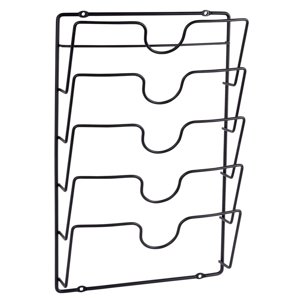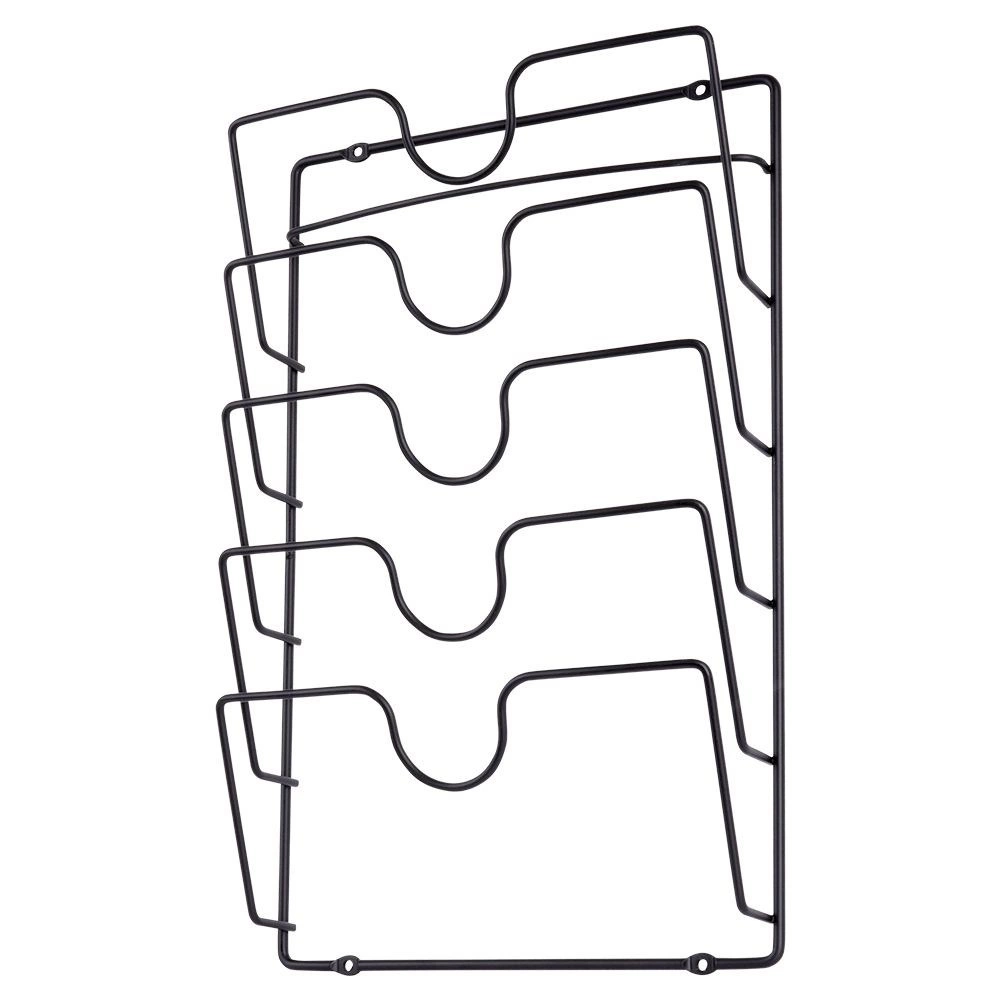Praktisk metalholder til låg med kapacitet til op til 5 låg holder dit køkken perfekt organiseret. Den kan nemt monteres på væggen eller indersiden af skabslågen, hvilket sparrer plads på køkkenbordet. Den robuste metalkonstruktion med pulverlakering i mat sort sikrer lang holdbarhed og et moderne look.