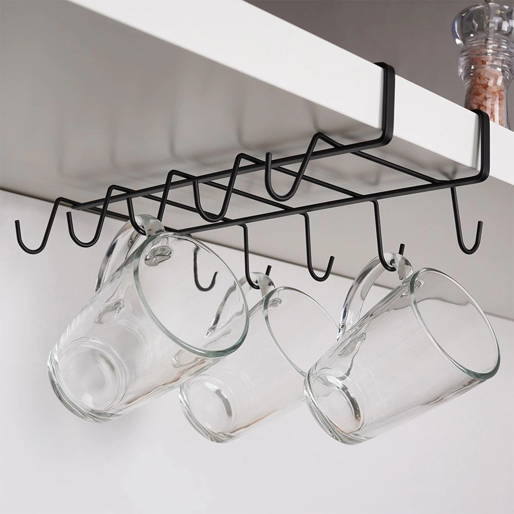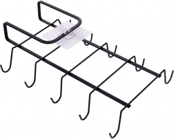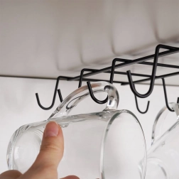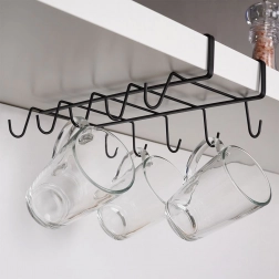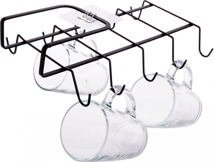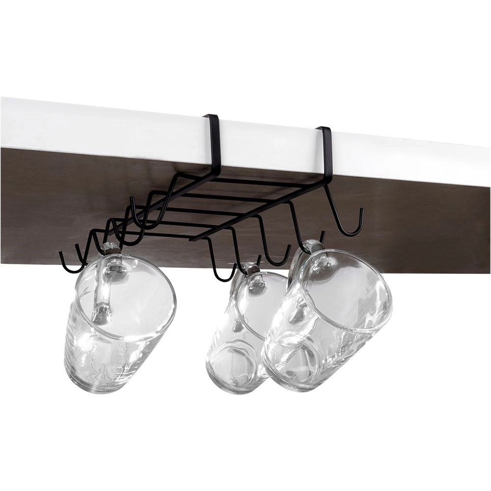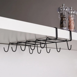 Den praktiske hængeholder under hylder og skabe hjælper med at organisere køkkenet og udnytte den vertikale plads optimalt. Takket være de ti kroge opbevarer du nemt krus, kopper og køkkentilbehør. Den matte sorte finish giver interiøret en loft-stemning.