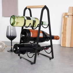 Den solide stålramme med bølgede holdere fastholder flaskerne sikkert og beskytter dem mod at rulle. Skridsikre fødder giver stabilitet på både bordplade og hylde.