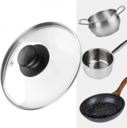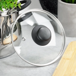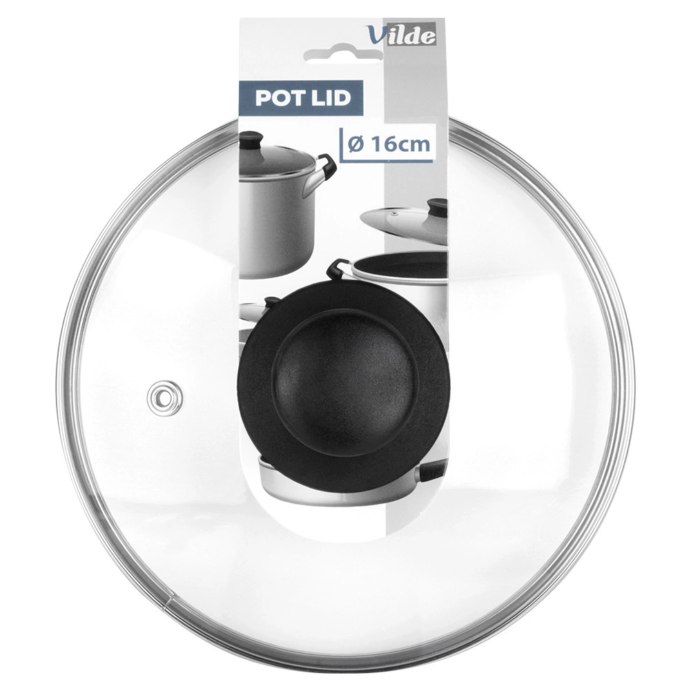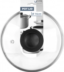 Universelt glaslåg med en diameter på 16 cm, forstærket rustfri stålkant og behageligt greb. Takket være det gennemsigtige, varmebestandige glas kan du nemt tjekke madlavningen uden at løfte låget. Låget har en dampudgang, er varmebestandigt op til 200 °C, fremskynder madlavningen og forhindrer sprøjt af vand og olie. Velegnet til gryder, pander og kasseroller i samme diameter, tåler opvaskemaskine.