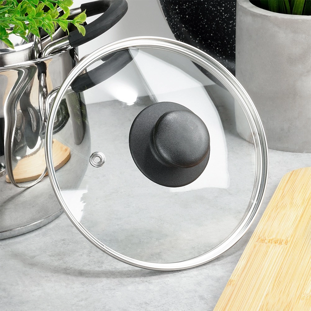 Takket være det gennemsigtige glas kan du nemt overvåge tilberedningen og minimere varmetab. Den integrerede udluftningsåbning leder effektivt overskydende damp væk, hvilket forhindrer overkogning og tilsmudsning af kogepladen. Den høje kant sikrer tæt tilslutning til grydens kant og reducerer sprøjt.