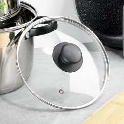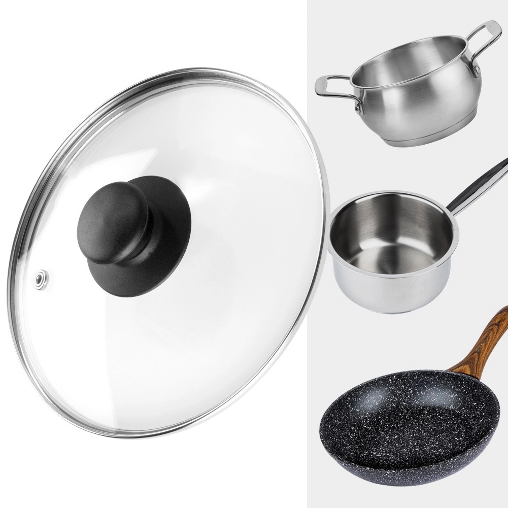 Glaslåg 18 cm er et praktisk tilbehør til gryder, pander og kasseroller med samme diameter. Det er fremstillet af varmebestandigt, gennemsigtigt glas med rustfri stålkant og robust plastknop i sort. Den gennemsigtige konstruktion gør det muligt at overvåge madlavningen uden at løfte låget, hvilket sparer både energi og tid.