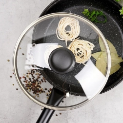Takket være udluftningsåbningen slipper overskydende damp ud, den let hvælvede form understøtter cirkulation af varm luft, og retterne koges eller steges hurtigere. Den høje kant sikrer tæt tilslutning til grydekanten, hvilket reducerer sprøjt af vand og fedt og holder maden varm længere.