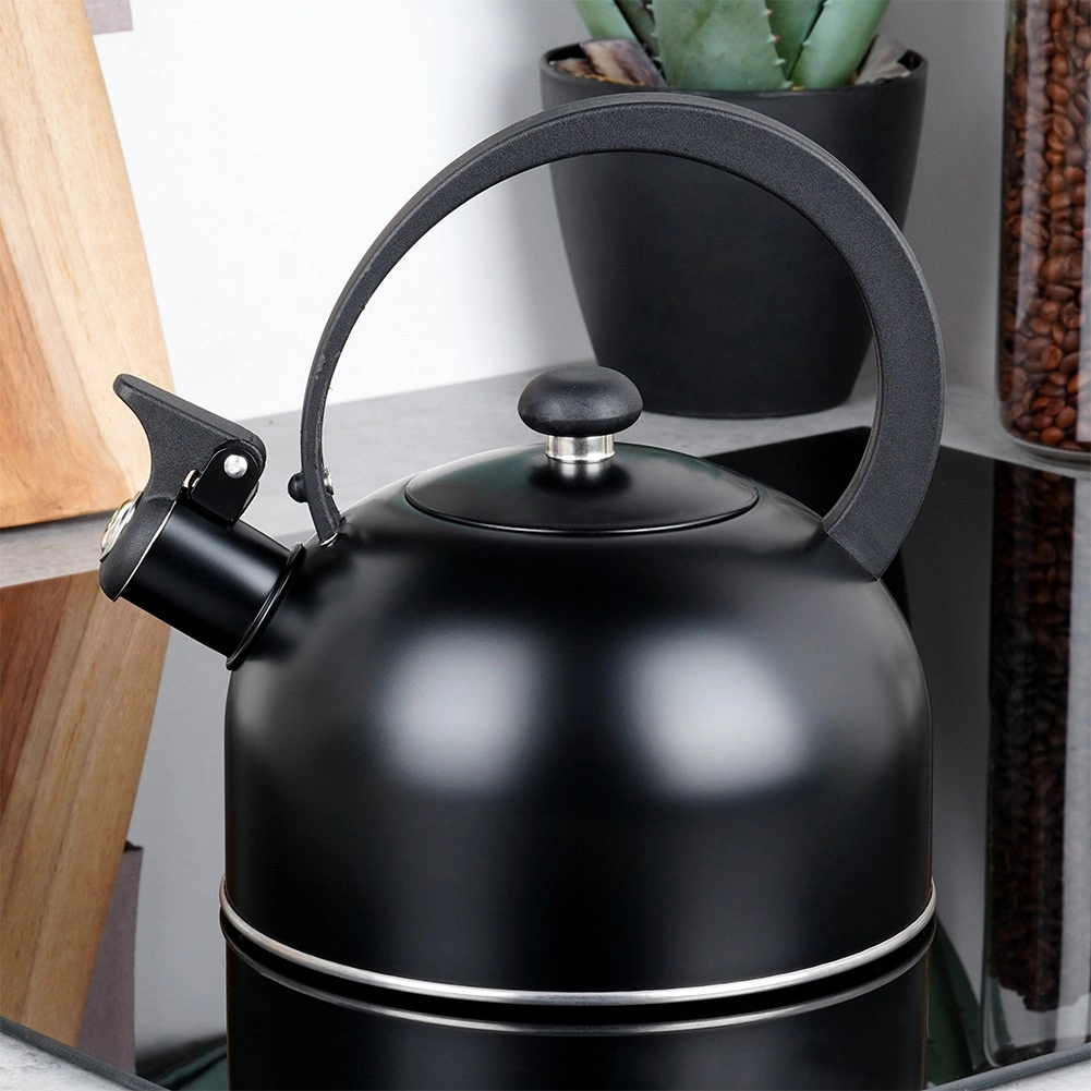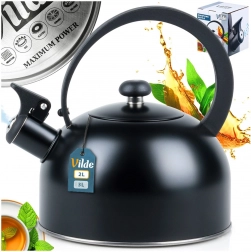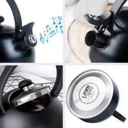 En stilfuld og holdbar tekande i rustfrit stål, ideel til daglig tilberedning af kaffe, te og urteteer. Takket være den akutermiske bund varmes vandet hurtigt op selv ved lavere effekt, hvilket sparer energi og tid. Fløjteproppen meddeler pålideligt kogepunktet og gør sikker ophældning nemmere.