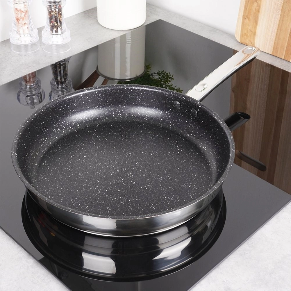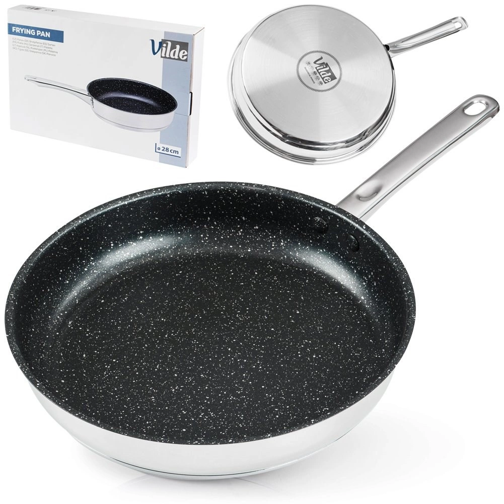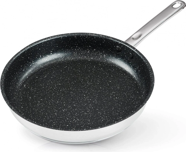 Denne designpande med granit non-stick belægning gør det muligt at lave mad med et minimum af fedt, så råvarerne bevarer deres naturlige smag og næringsværdi. Den massive krop i rustfrit stål akkumulerer og fordeler varmen jævnt, så du opnår perfekte resultater ved stegning, sautering og lynstegning.
