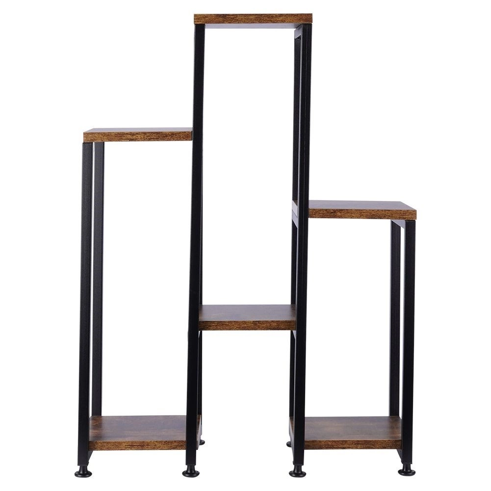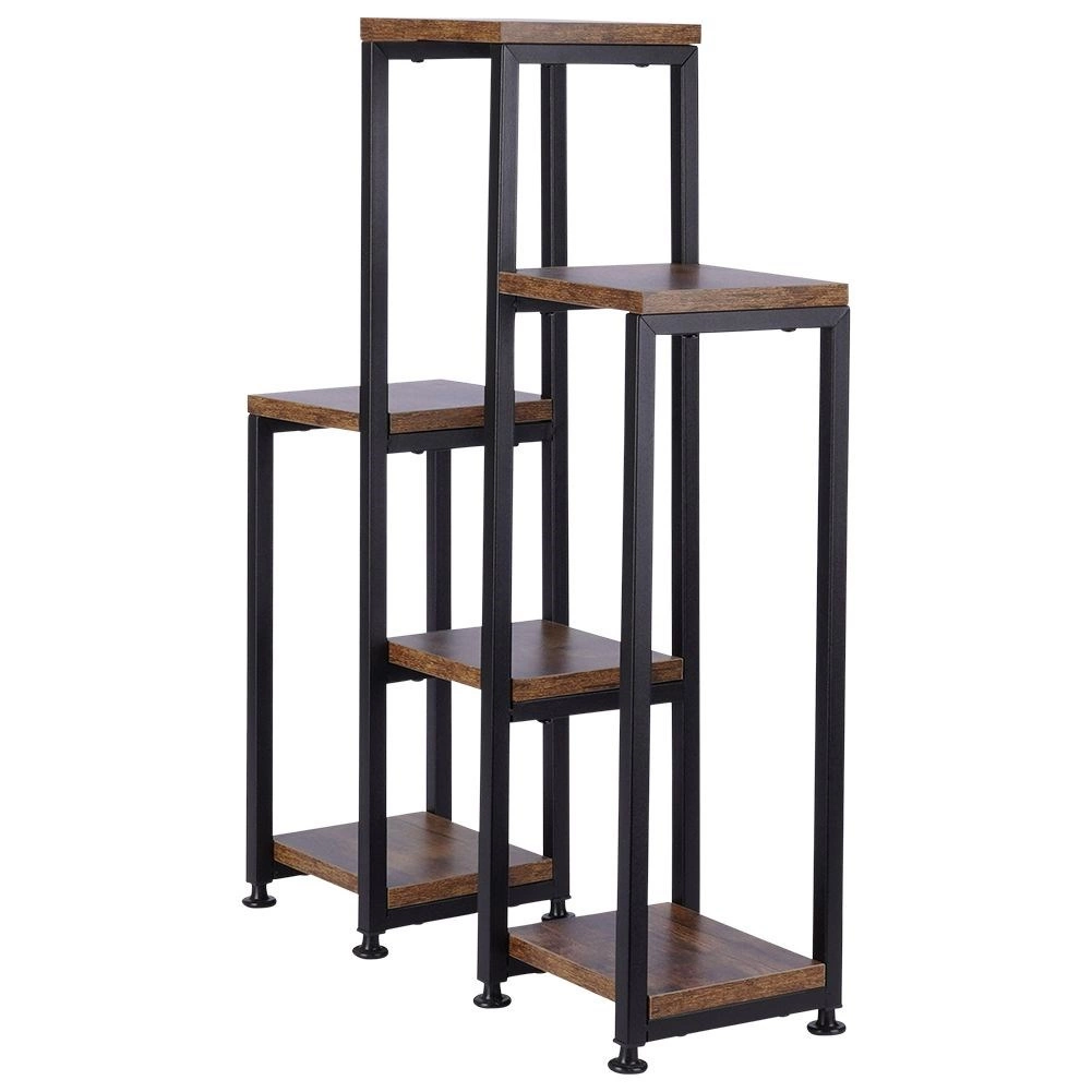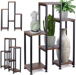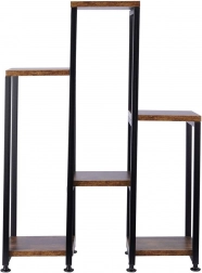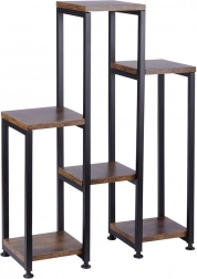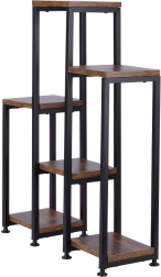 Stilfuld blomstestand i industriel loft-stil med 6 hylder på 5 forskellige niveauer til planter og dekorationer. Takket være den robuste metalkonstruktion og MDF-hylder i trælook er den stabil, holdbar og nem at rengøre. De kompakte mål 49 × 18 × 70 cm og bæreevne op til 60 kg gør den ideel til stue, køkken, gang, kontor samt overdækket altan eller terrasse.