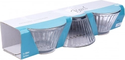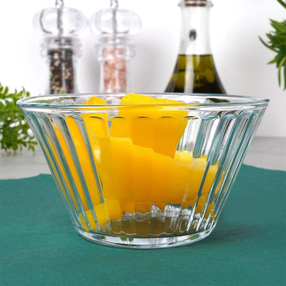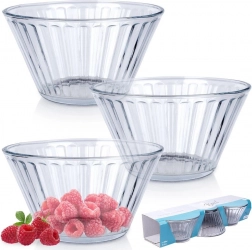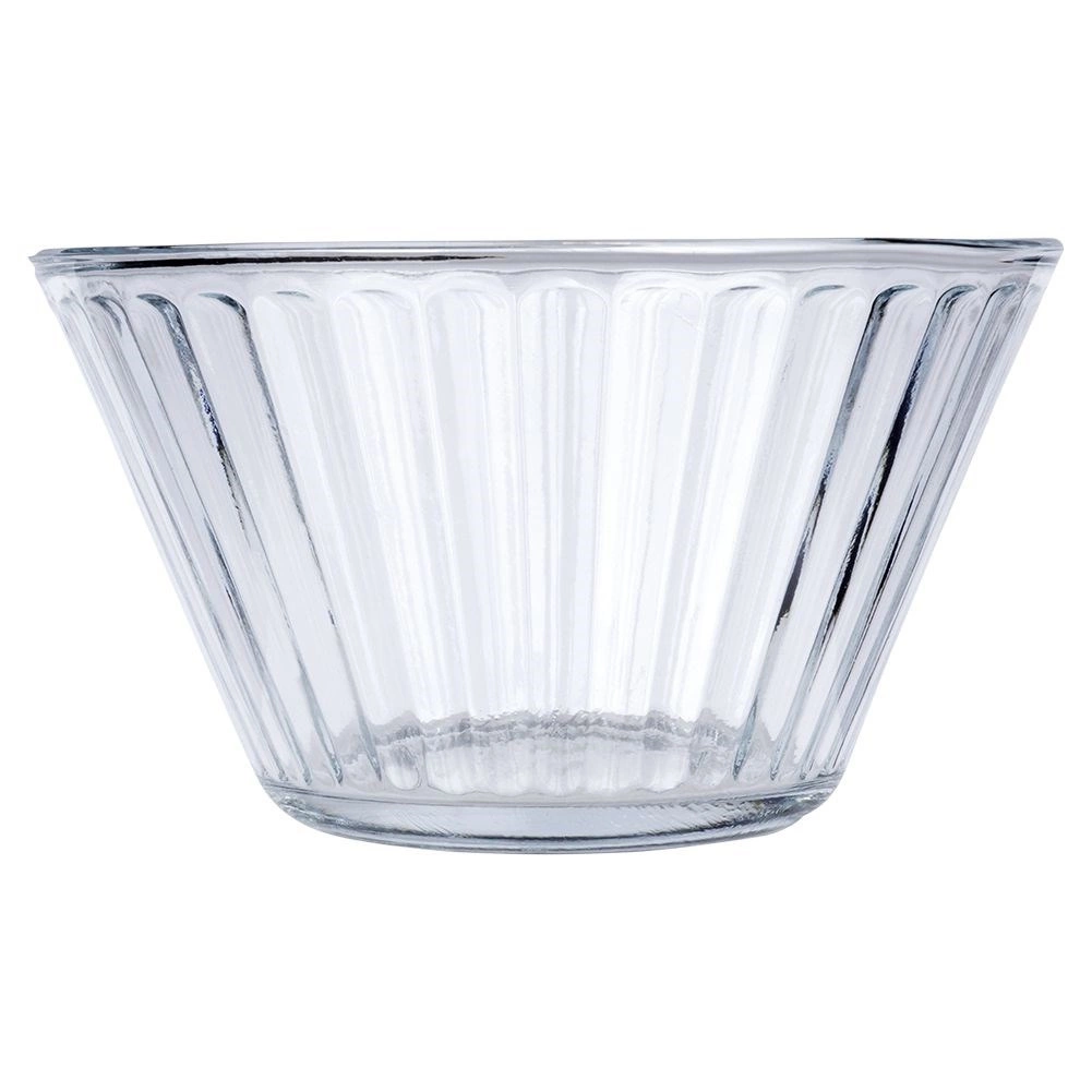 Sættet med tre alsidige glasskåle kombinerer funktionalitet og stil. Det transparente glas med vertikale riller giver et elegant udtryk og sikrer samtidig fuldt overblik over indholdet. Velegnet til både kolde og varme retter.