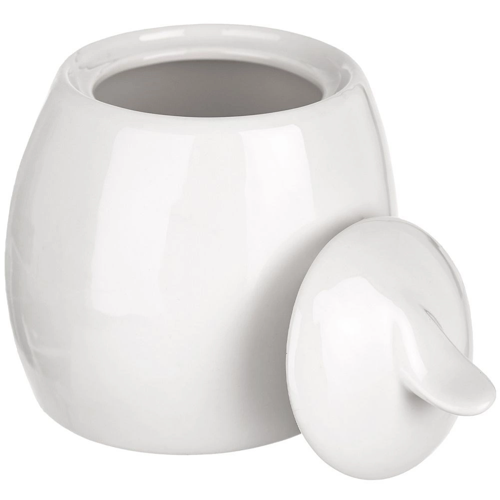 En stilfuld sukkerskål i kvalitets hvidt porcelæn kombinerer et elegant udseende med praktisk anvendelse. Takket være de kompakte mål tager den sig flot ud på bordet, og låget med greb holder indholdet friskt og beskyttet i længere tid.