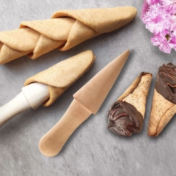 Denne træform til kornetter i bøgetræ har en ergonomisk kegleform, som gør det let at rulle dejen jævnt og bage i ovn. Den er genanvendelig, modstandsdygtig over for skader og holder i mange år ved korrekt pleje.