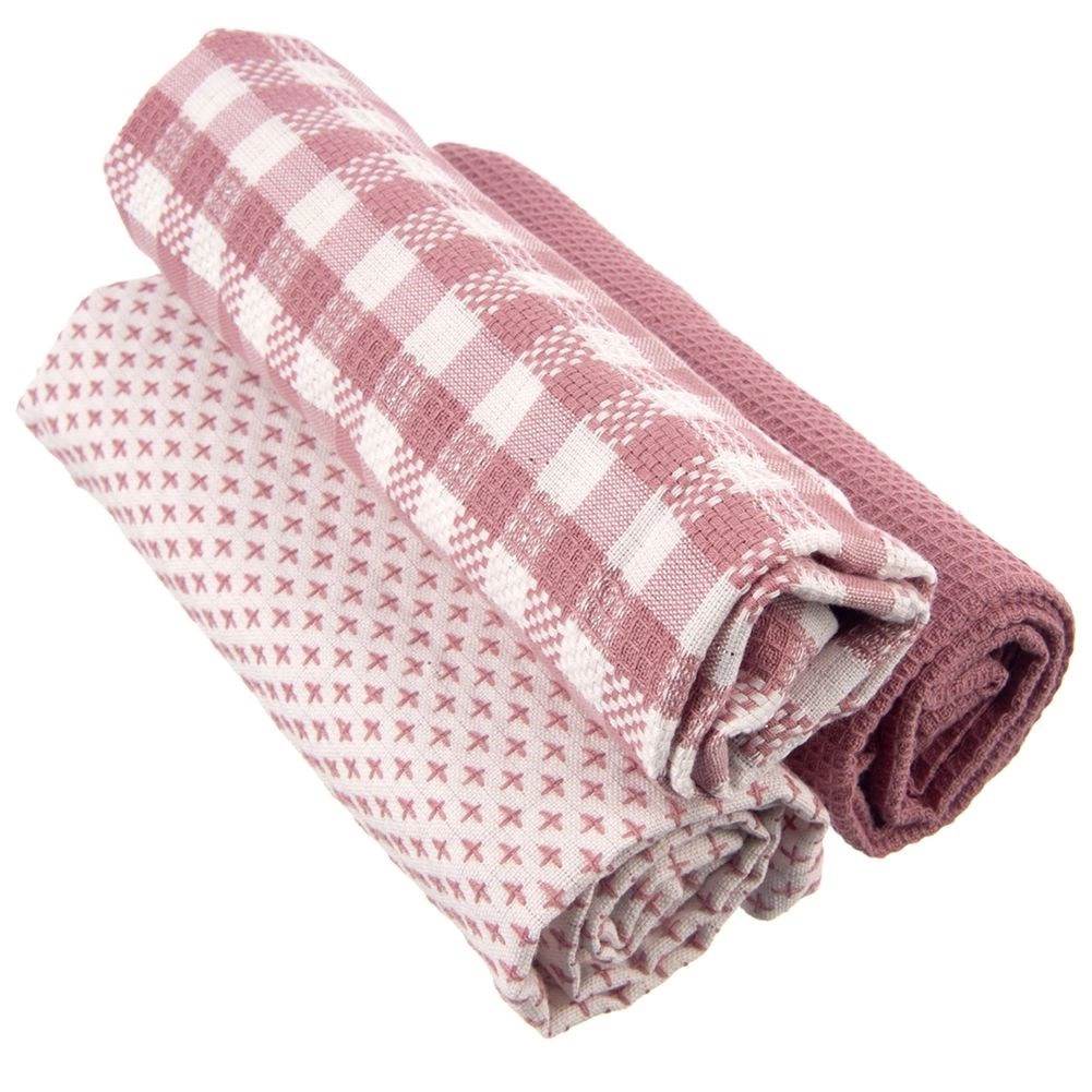 Opdag kvalitets-køkkenhåndklæder, der kombinerer funktion og stil. Tre forskellige mønstre i sarte rosatoner frisker dit køkken op, mens den naturlige bomuldsfiber sikrer hurtig og effektiv tørring af service og arbejdsflader.