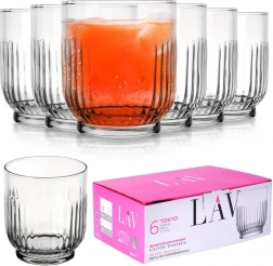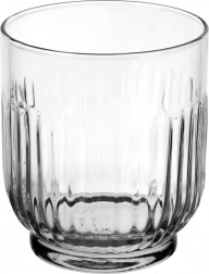 Glassene har en kapacitet på 300 ml, en højde på 9 cm og en diameter på 8 cm – den ideelle størrelse til vand, iste, hjemmelavet lemonade og whisky. Den enkle vedligeholdelse og muligheden for opvask i maskine sparer tid, mens den klassiske form let kan kombineres med andet service.