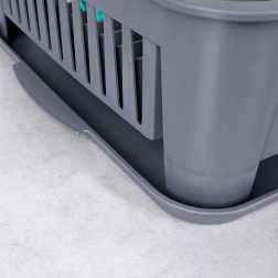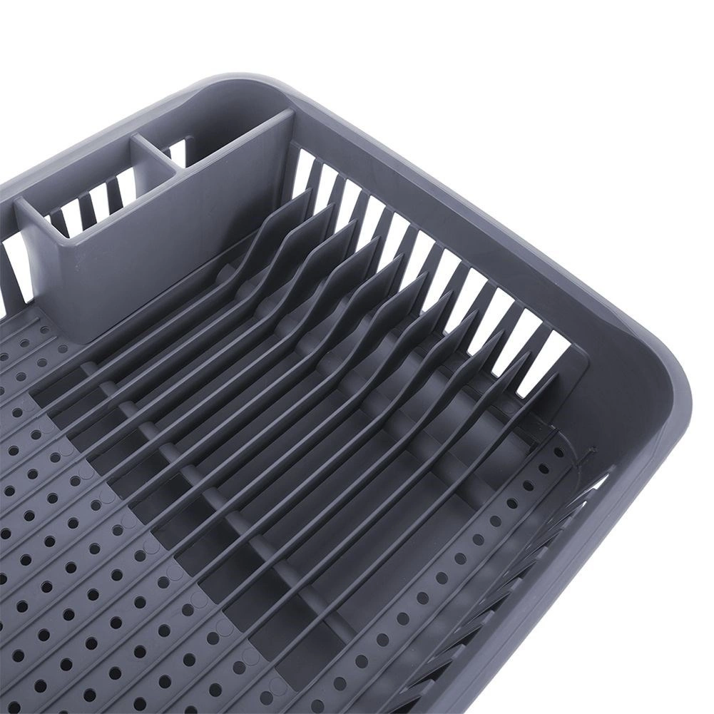 Hold dit køkken rent og organiseret. Dette grå opvaskestativ er lavet af kvalitetsplast, der er holdbart, og de kompakte mål passer til de fleste køkkenborde. Den aftagelige drypbakke opsamler vand og beskytter bordpladen, mens den gennemtænkte inddeling giver hurtig og hygiejnisk tørring af service.