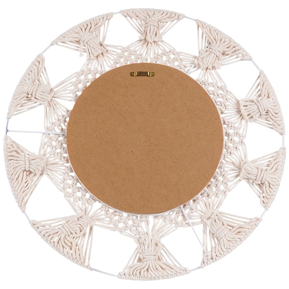 Bring lethed og hygge ind i hjemmet med et rundt spejl i den populære boho-stil. Kombinationen af beige bomuldsflet i macramé-look og en dekorativ ring af søgræs skaber en unik vægaccent. Spejlet giver en skarp og naturlig gengivelse og fungerer som både praktisk og dekorativt blikfang.