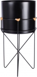 Mål: overpotte 17 × 31,5 cm (inkl. stativ), beholder 15 × 13 cm; egnet til en indvendig potte med maks. diameter 14,5 cm. Den matte sorte overflade og de fine dekorative detaljer virker tidløse og er lette at kombinere med andet tilbehør.