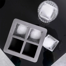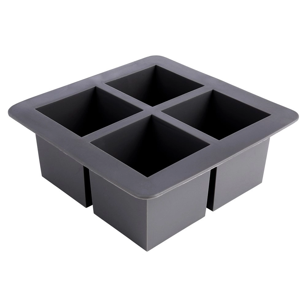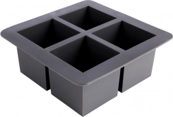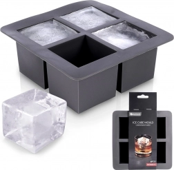 Praktisk silikoneform til is danner 4 ekstra store firkantede terninger 5,5 × 5,5 × 5,5 cm, som smelter langsommere og holder drikke kolde længere uden unødig fortynding. Takket være den fleksible silikone er terningerne nemme at få ud, og formen er let at rengøre, også i opvaskemaskinen.