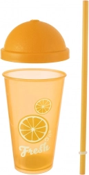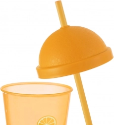 Nyd dine yndlingskolde drikke med stil – dette plastikkrus med låg og sugerør byder på frisk citrusdesign og bekvemmelighed ved hver slurk. Takket være det skruede låg kommer hverken snavs eller insekter ned i drikken, og det genanvendelige sugerør bliver sikkert på plads.
