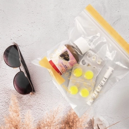Ideelle til organisering af medicin, kosmetik og småting i håndbagagen takket være den pålidelige lynlås.