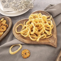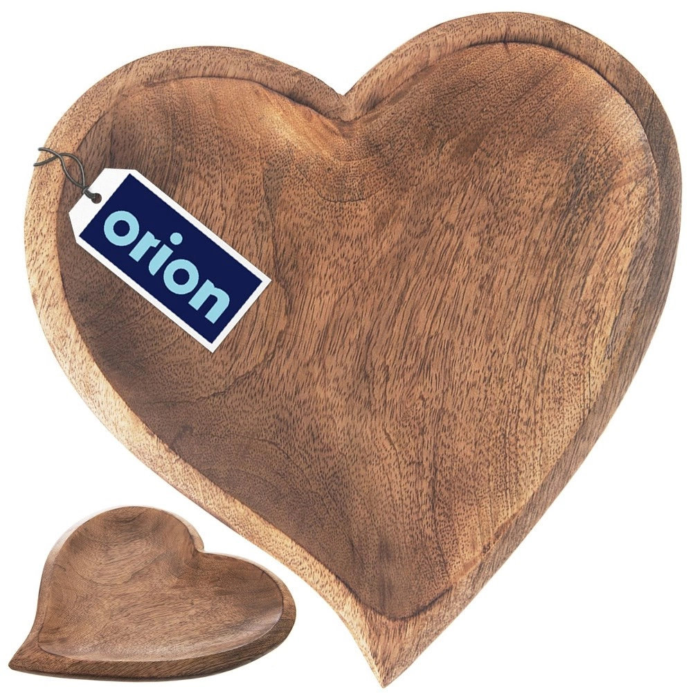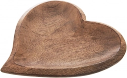 Oplev charmen ved naturlig servering med et håndlavet fad af mangotræ. Den hjerteformede silhuet, de glatte afrundede kanter og den naturlige åretegning giver enhver borddækning et varmt og moderne udtryk. Takket være den forhøjede kant bliver snacksene liggende på plads og ser perfekt anrettede ud.