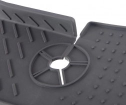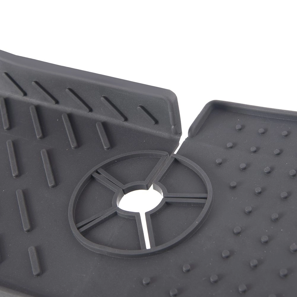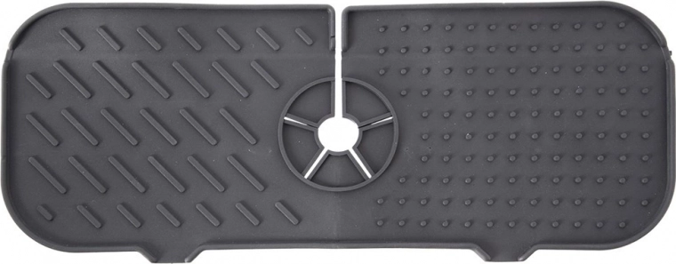 Silikone af høj kvalitet i grafitfarve sikrer stabilitet takket være den skridsikre struktur med knopper og nem rengøring – måtten kan også komme i opvaskemaskinen. To formede afløbskanter leder effektivt overskydende vand væk tilbage i vasken eller håndvasken.