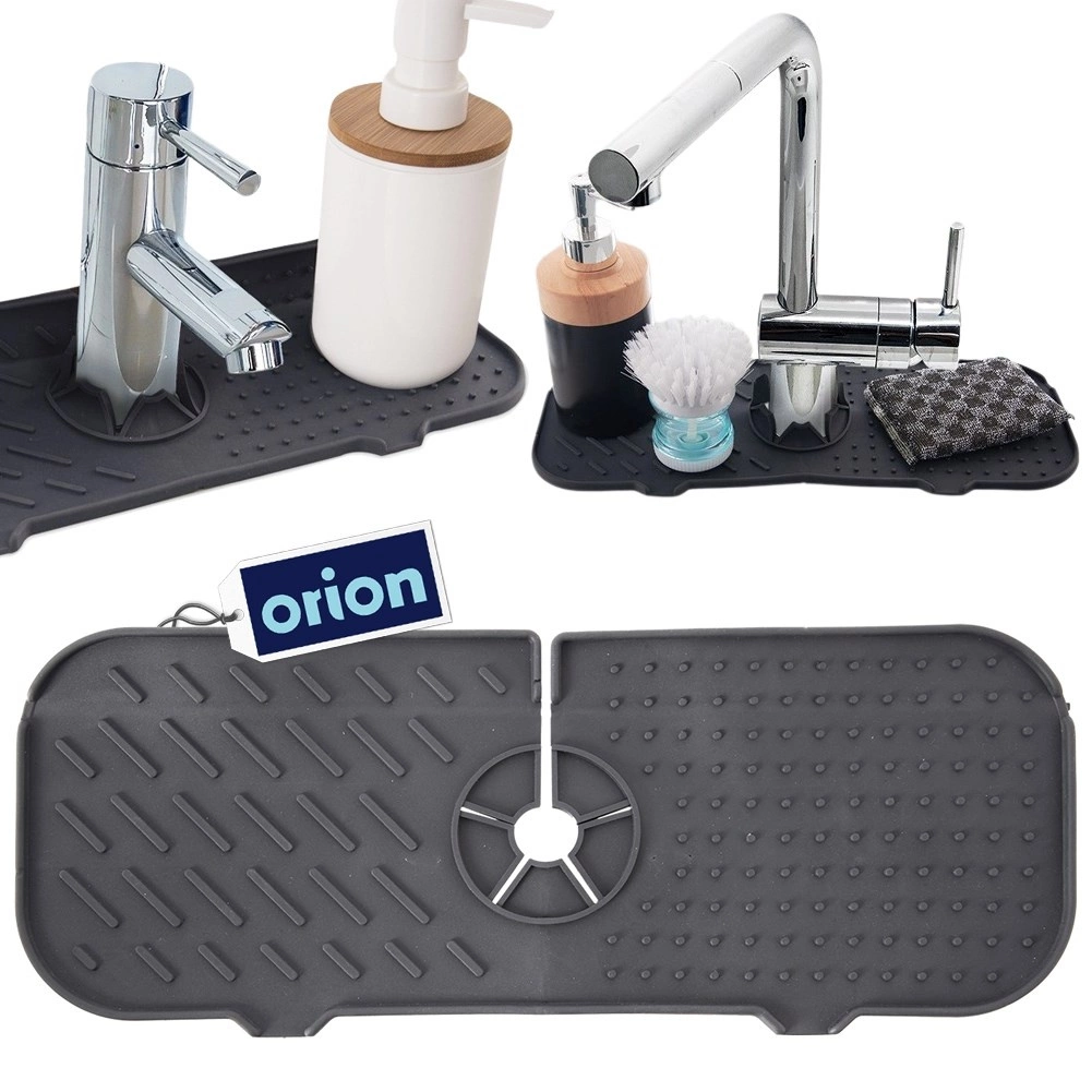 Hold rent og tørt omkring vasken og i badeværelset. Silikonemåtten med den praktiske udskæring omkring armaturet opfanger dråber, leder vandet tilbage i vasken og fungerer samtidig som organizer til svampe, børster eller dispensere. Beskytter bordpladen mod fugt, snavs og kalkaflejringer.