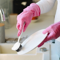 Tætte, fleksible og slidstærke børster af kvalitets-silikone klarer både fedt og indtørret snavs og er samtidig skånsomme mod overflader.