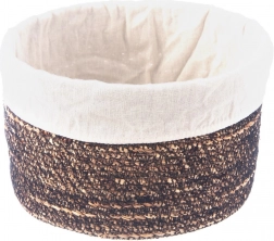 Denne alsidige opbevaringskurv i naturfarve kombinerer et rustikt udtryk med praktisk anvendelse. Håndflet i vandhyacint fremhæver materialets struktur, mens den lyse, aftagelige og vaskbare stofindsats beskytter indholdet og gør vedligeholdelsen nem.